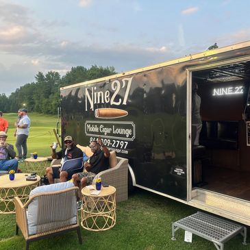 Mobile Lounge Setup with Trailer and Outdoor Lounge